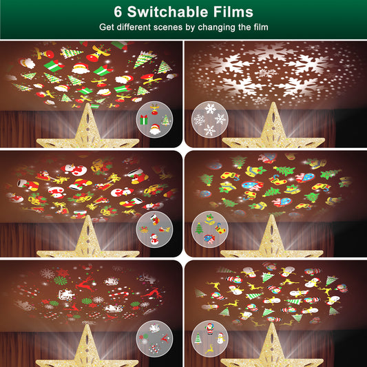 Christmas Tree Topper, Tunnel Mirror Golden Light Star Topper